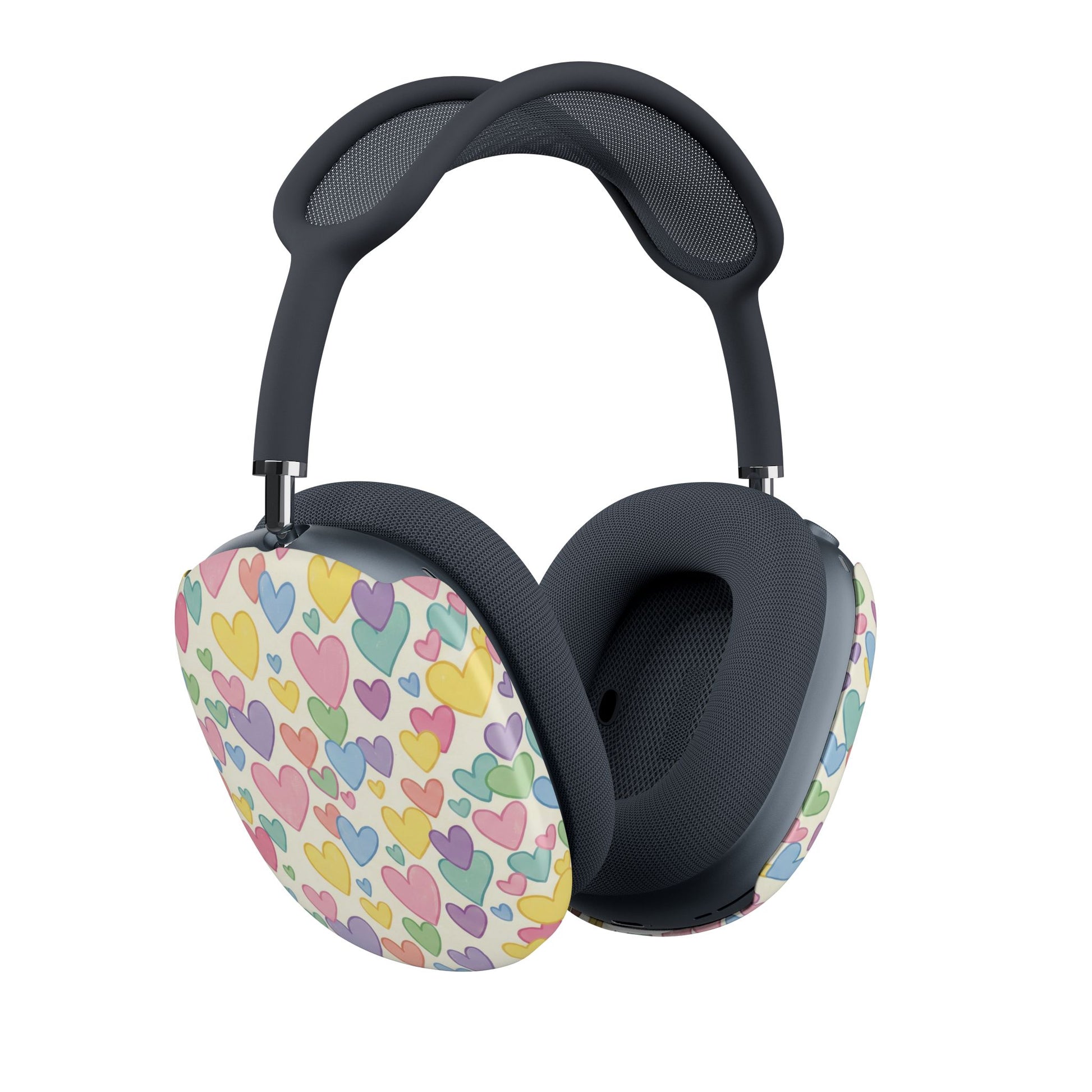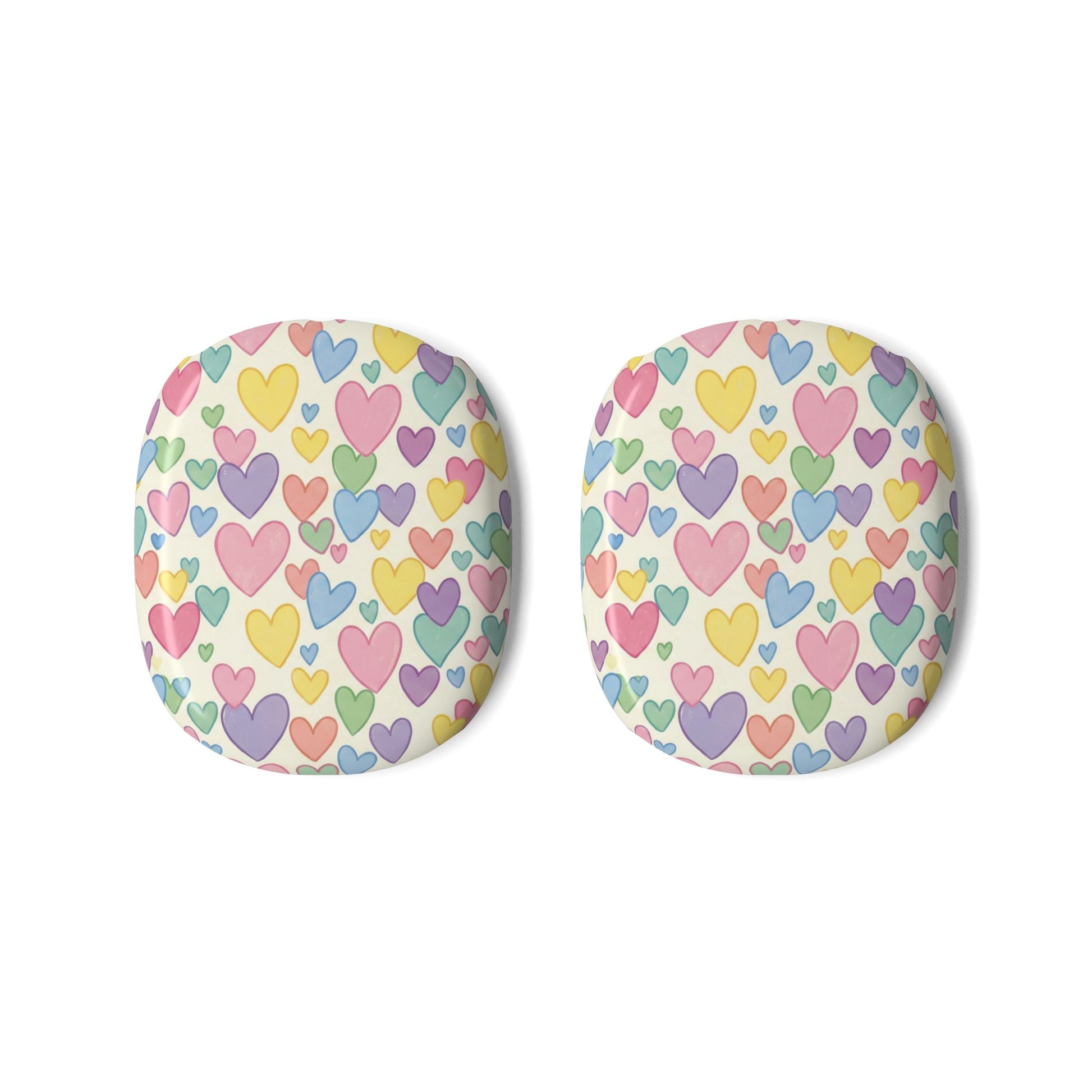 Bright, cheerful earcup covers that bring a playful burst of color to your listening routine. These slim polycarbonate AirPod Max cases slip over your earcups without adding bulk, showing off a hand-drawn cascade of pastel hearts in yellow, pink, lavender and mint. The glossy or matte finish resists scratches and keeps the pattern vivid while still allowing wired or wireless charging and fitting over existing headphone protectors. They feel lightweight on the head and add an instant personality boost—whether you’re commuting, studying at a cafe, or turning up a cozy playlist at home.