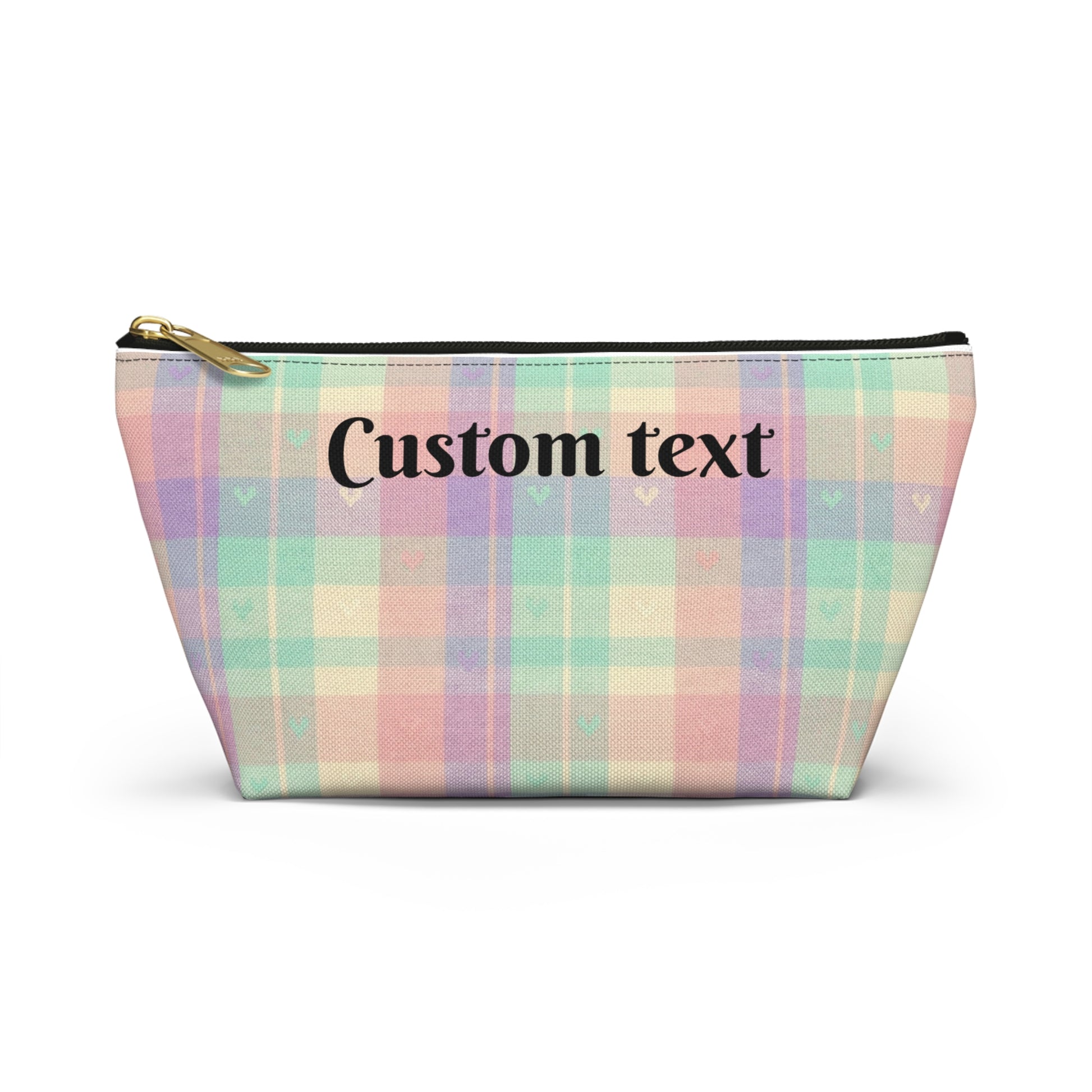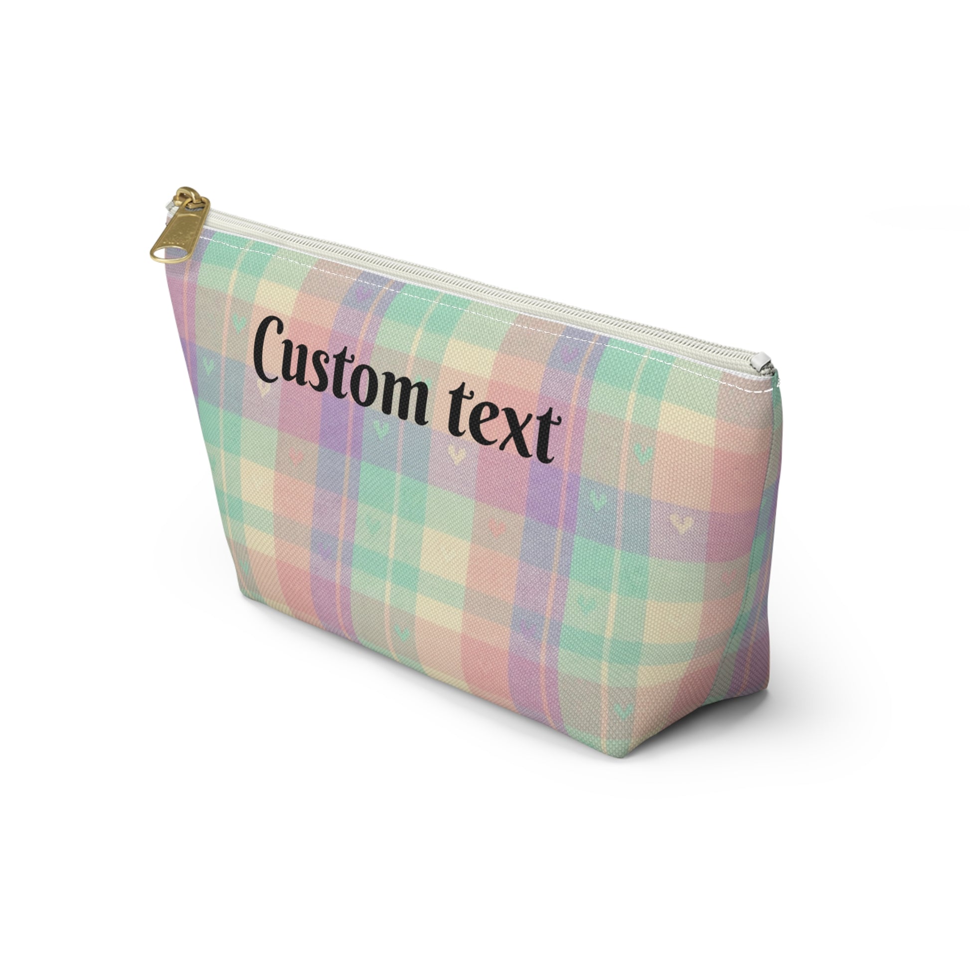 Pastel Plaid Custom Accessory Pouch — Personalized Makeup & Travel Organizer
